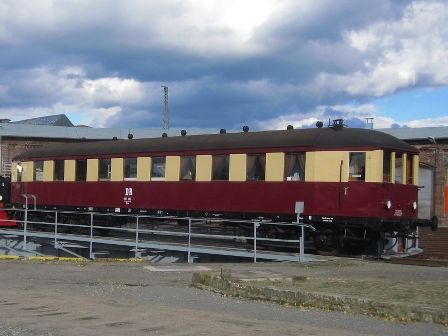 Seine letzte Untersuchung erhielt unser Beiwagen am 08.08.1977 im Bw Jerichow. Später dann in Schönhausen/Elbe abgestellt, erfolgte am 02.05.1982 seine Überführungsfahrt nach Salzwedel, um in den Besitz der damaligen DMV Arbeitsgemeinschaft 7/64 überzugehen, aus dem 1990 die Draisinen- und Modellbahnfreunde Salzwedel hervorgingen.
