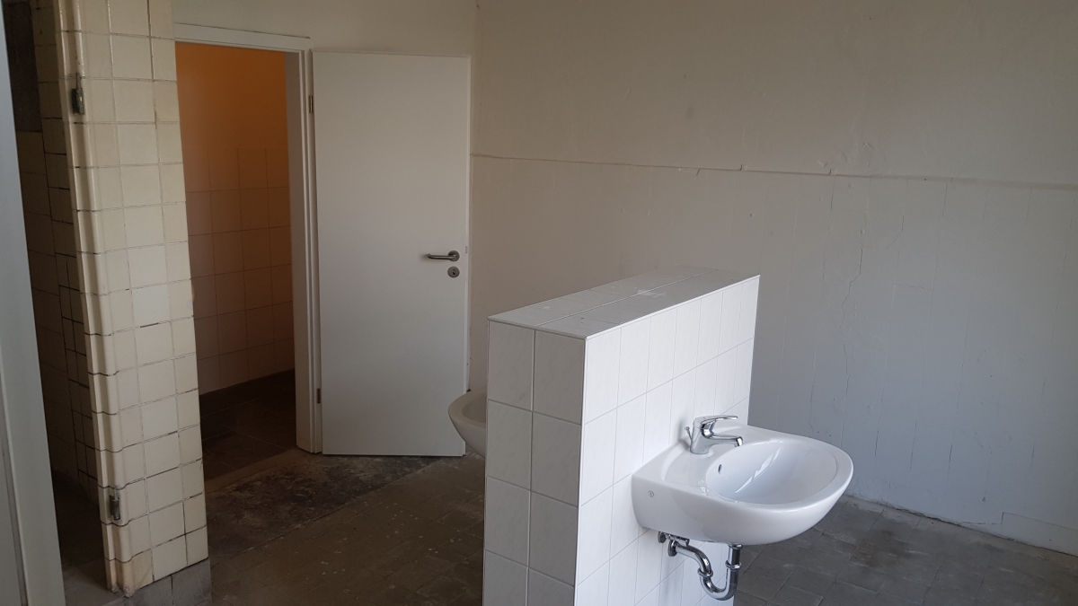 Auch am Lokschuppengebäude tut sich einiges. Vor einigen Wochen haben wir den ehemaligen Umkleideraum und die dazugehörigen Sozialräume am südlichen Lokschuppengiebel wieder in Besitz nehmen können. Diese Räume waren in den letzten Jahren anderweitig genutzt. Hier sollen nun ein großer und ein kleiner Ausstellungsraum entstehen. Außerdem wird ein neuer Übernachtungsraum mit Toilette und Waschgelegenheit eingerichtet. Die Arbeiten sind bereits weit fortgeschritten. Es wurden energiesparende Lampen angebracht und der große Ausstellungsraum ist bereits gestrichen.