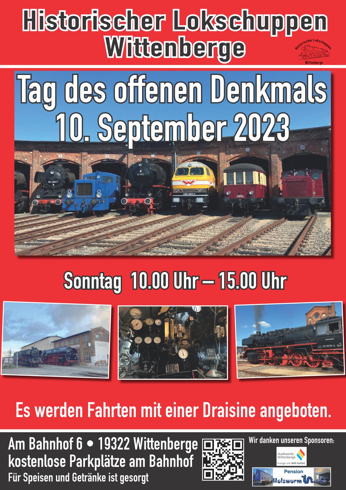 Und zu guter Letzt möchten wir heute und an dieser Stelle schon einmal auf unseren „Herbstdampf“ hinweisen, ein buntes Lokfest für die ganze Familie mit jeder Menge Aktivitäten im Lokschuppen und Sonderfahrten in den Wittenbergener Hafen.