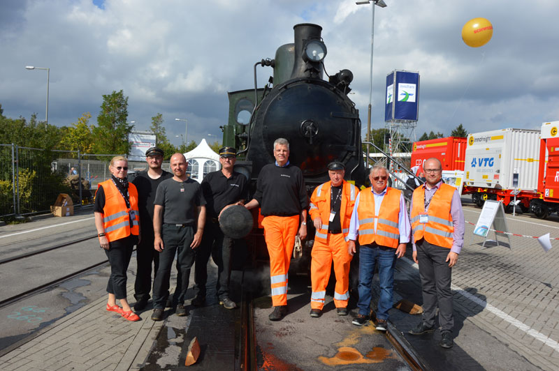 Unsere kleine Dampflok Emma soll wieder der heimliche Star der weltgrößten Messe für Eisenbahntechnik in Berlin werden. Diese Messe beginnt am 20.9. und endet am Sonntag darauf. Während dieser Zeit steht Emma für Führerstandsmitfahrten zur Verfügung. Da die kleine Lok nicht selbst den Weg nach Berlin auf eigener Achse zurücklegen kann, hat die Firma DB Schenker sie auf einen Schwertransporter verladen und zur Messe transportiert.